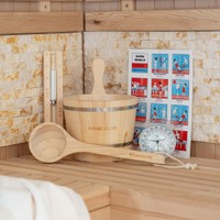 Sættet indeholder alt, hvad du skal bruge til en beroligende saunagus: en stilfuld saunaspand, en matchende øse, et timeglas og et termometer. Finishen i høj kvalitet af holdbart fyrretræ sikrer et elegant udseende og høj modstandsdygtighed over for varme og fugt. Sættet kan med fordel kombineres med saunadufte af høj kvalitet for at få en mere intensiv opgysningsoplevelse. De harmoniske aromaer skaber en behagelig atmosfære og øger velværet.