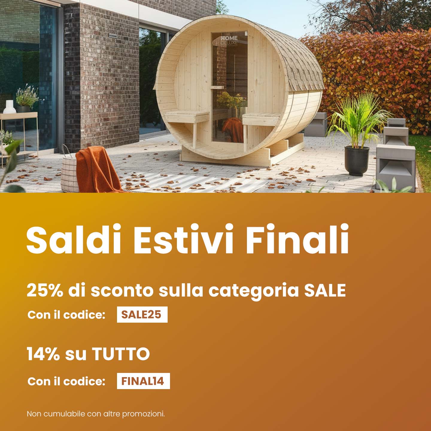 Se per il benessere e il lusso preferite non uscire mai di casa, potete pensare di arricchire l'arredamento di conseguenza. Forse sognate di avere una sauna personale? In linea di principio, non è difficile realizzare questi sogni. Home-Deluxe vi offre quindi una selezione adeguata di saune e cabine a infrarossi adatte all'installazione in casa vostra. Dimensioni, stili e funzioni diverse rendono la gamma molto versatile per acquistare e trovare la sauna desiderata. Queste includono saune per tutta la famiglia o per singoli individui. Da Home-Deluxe è possibile acquistare anche moderne cabine a infrarossi da utilizzare come alternativa alla classica sauna per il benessere.