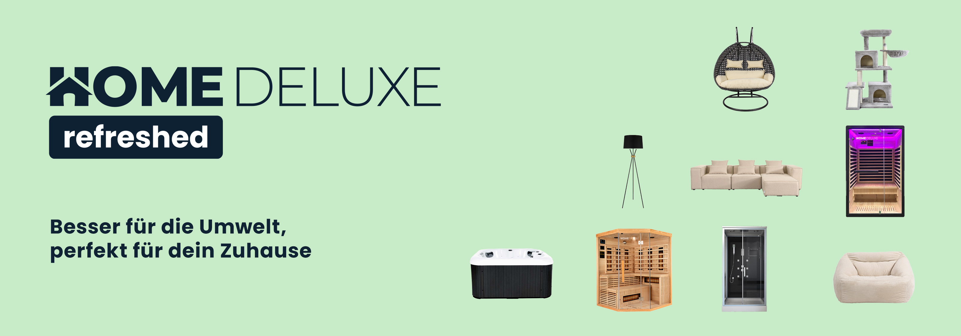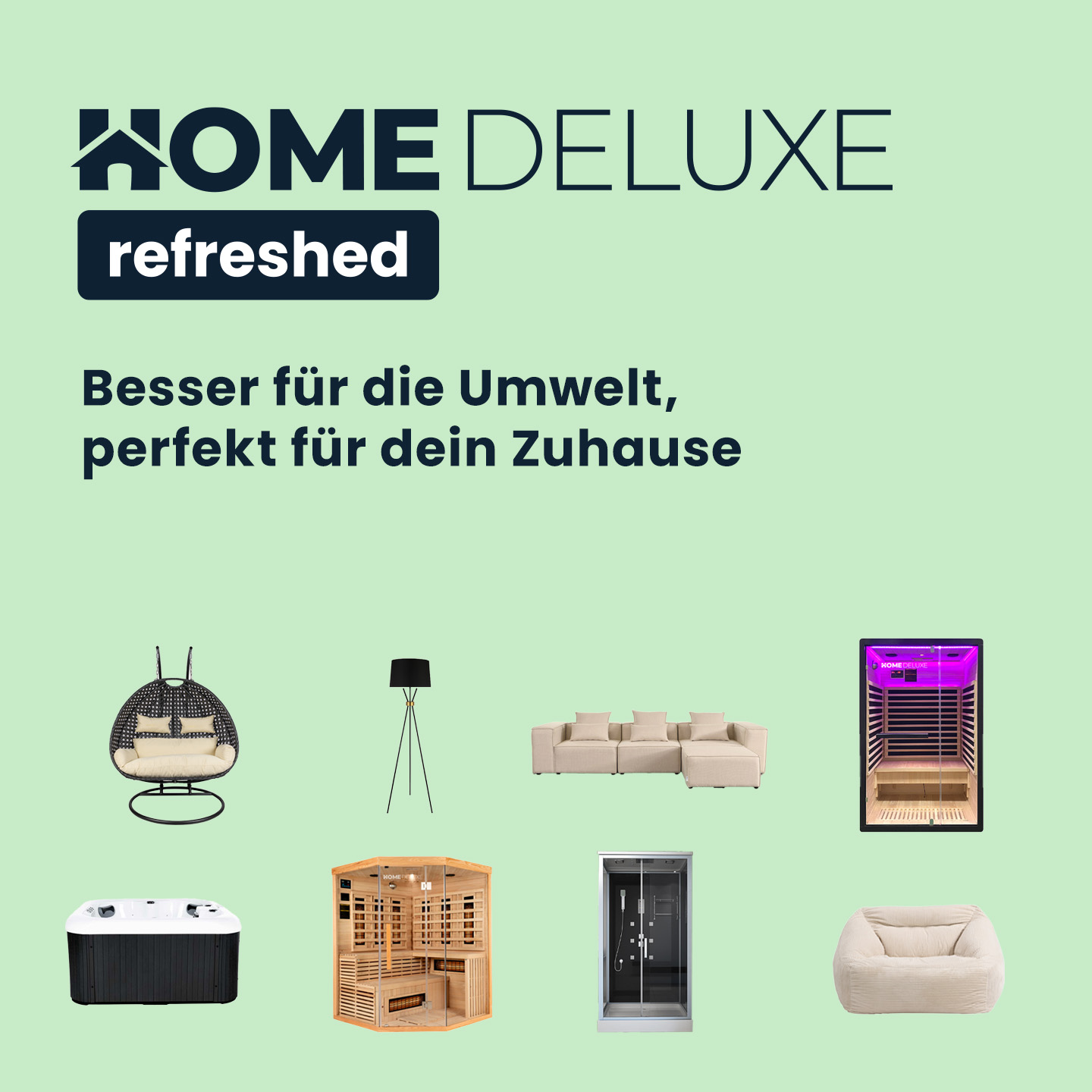 Willkommen bei Home Deluxe Refreshed! Hier findest du hochwertige Produkte, die mit Liebe zum Detail und einem klaren Fokus auf Nachhaltigkeit wiederaufbereitet wurden. Unser Motto „Besser für die Umwelt, perfekt für dein Zuhause“ steht für eine umweltbewusste Alternative zu neuen Artikeln, ohne Kompromisse bei Qualität und Design.