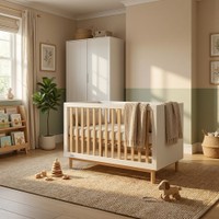 Dank neutraler Gestaltung fügt es sich harmonisch in jedes Kinderzimmer ein und passt zu unterschiedlichen Einrichtungsstilen. Das Bett wächst mit Ihrem Kind mit und lässt sich dank abnehmbarer Stangen vom Babybett zum Kinderbett umbauen. Es ist höhenverstellbar, sodass die Liegehöhe flexibel angepasst werden kann, und der integrierte Rausfallschutz sorgt für zusätzlichen Schutz beim Schlafen. Die stabile Konstruktion garantiert sicheren Stand und langlebige Nutzung, während die glatt lackierte Oberfläche pflegeleicht und einfach zu reinigen ist. Als Teil der beliebten COCO-Serie lässt sich das Kinderbett perfekt mit weiteren Möbeln der Serie kombinieren, um ein stimmiges und funktionales Kinderzimmer zu gestalten.