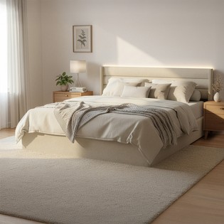 Mach dein Schlafzimmer zu einem Ort der Entspannung – mit dem LED Bett Sorina, das zeitloses Design, Funktionalität und Komfort perfekt vereint. Das integrierte LED-Licht im Kopfteil schafft auf Knopfdruck stimmungsvolle Atmosphäre, und dank RGB- und CCT-Beleuchtung kannst du zwischen warmweißem, neutralweißem, kaltweißem oder lebendigen Farbtönen wie Blau, Grün und Rot wählen – ideal zum Lesen, Relaxen oder Einschlafen.