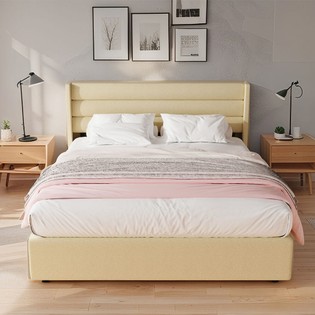Dieses Bett ist mehr als nur eine Schlafstätte – es ist ein echtes Statement für Stil und smarte Ausstattung. Das integrierte LED-Licht im Kopfteil schafft stimmungsvolle Atmosphäre auf Knopfdruck. Dank RGB- und CCT-Beleuchtung kannst du zwischen warmweißem, neutralweißem oder kaltweißem Licht wählen – ideal zum Lesen, Entspannen oder Einschlafen. Die hochwertige Konstruktion mit stabilem Rahmen garantiert Langlebigkeit und sicheren Halt. Der aufklappbare Lattenrost bietet großzügigen Stauraum unter der Liegefläche – ideal, um Bettwäsche, Kissen oder Decken ordentlich zu verstauen. Der weiche Stoffbezug in elegantem Beige (identisch mit unserem „Sofa VERONA Beige“) verleiht dem Bett eine warme, einladende Optik und lässt sich leicht pflegen und reinigen.